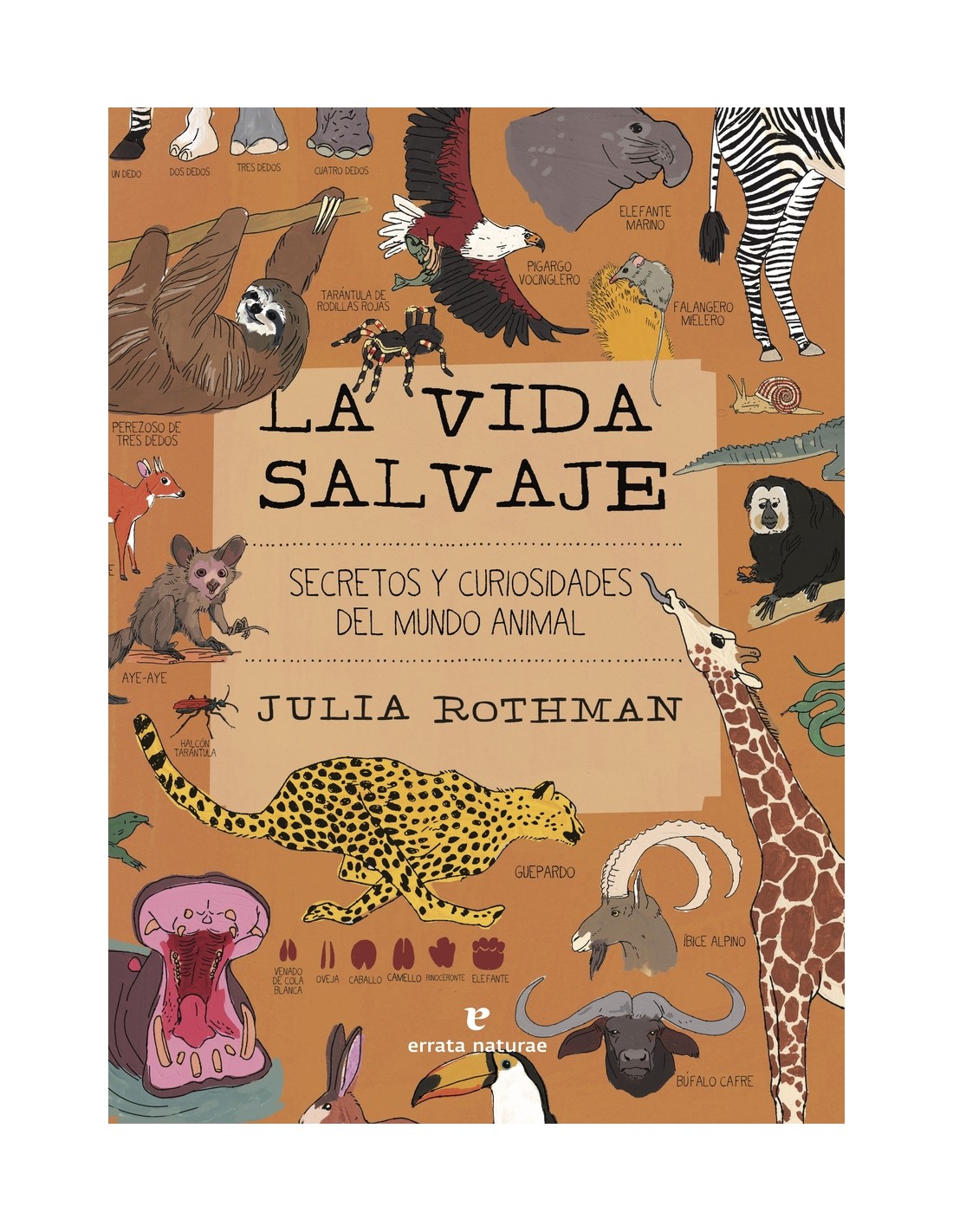 Combinando arte y ciencia, los bellísimos y detallados dibujos de Julia Rothman examinan los aspectos más fascinantes de la vida salvaje que nos rodea. Es el momento de rendirse a lo salvaje. Monos, gorilas y orangutanes;lobos, leones y tejones;jirafas, cebras y elefantes;serpientes, sapos y salamandras. Desde los desiertos más extremos hasta las junglas más exuberantes, pasando por montañas, bosques, ríos y océanos. Embárcate en un viaje alrededor del mundo y, al tiempo que disfrutas con sus minuciosas y originales ilustraciones, descubre todas las curiosidades del reino animal: la anatomía detallada de la garra de un felino, las intrincadas relaciones sociales de los primates o las increíbles capacidades regenerativas del ajolote... Aprende sobre la portentosa inmensidad de la vida salvaje de nuestro planeta con este libro: un auténtico tesoro que promete nuevos hallazgos cada vez que se hojeen sus páginas.