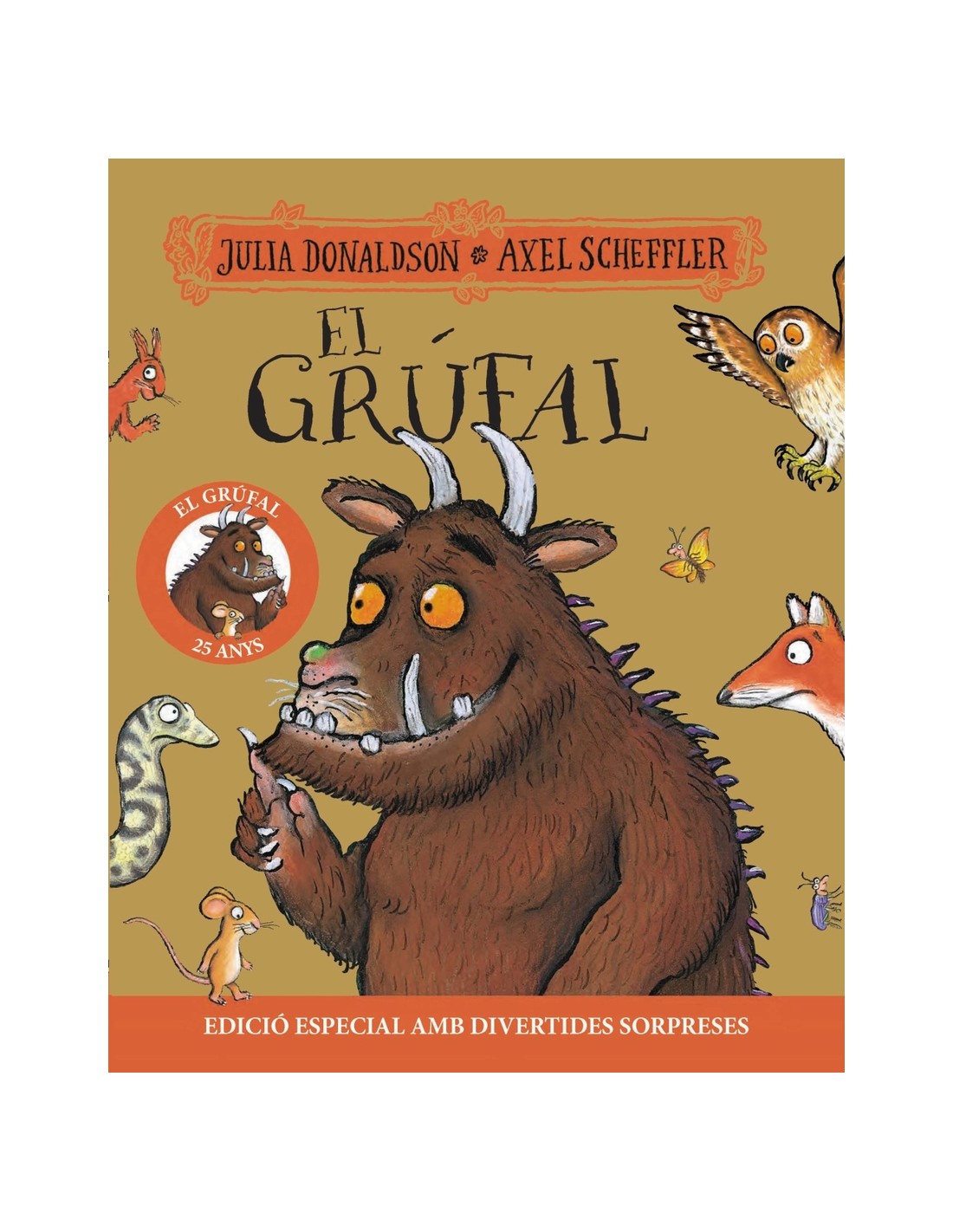 El grúfal té uns ullals terribles, les grapes esmolades i fortes i una berruga verinosa a la punta del nas;per això, tots els animals del bosc fugen quan el veuen! Celebra els 25 anys d'aquest clàssic amb una edició especial que inclou les curiositats i sorpreses més divertides!