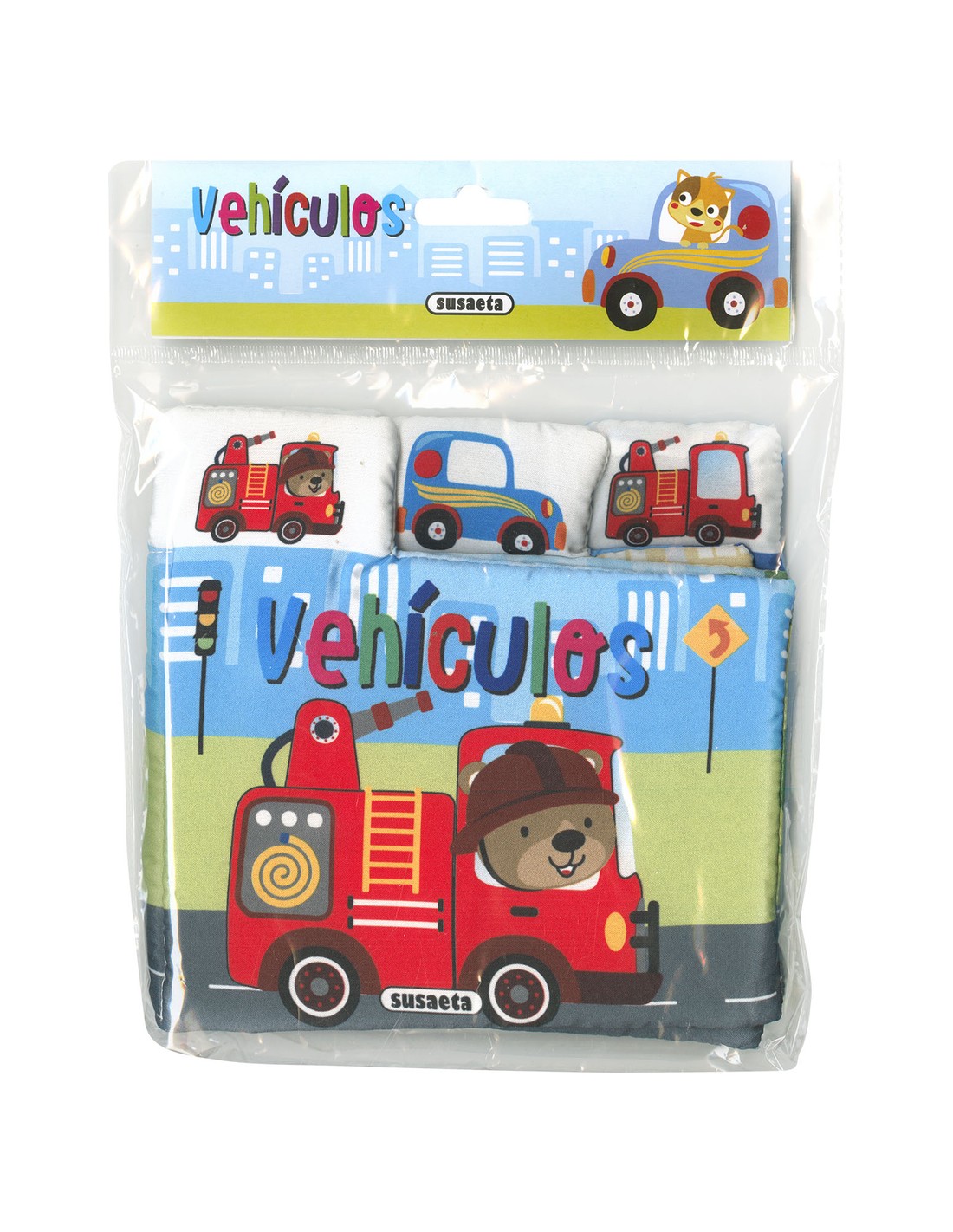 Toca, aprieta, retuerce este blandito libro en el que encontrarás a tus nuevos amigos con sus divertidos vehículos. Un libro de tela colorido y perfecto para los bebés.