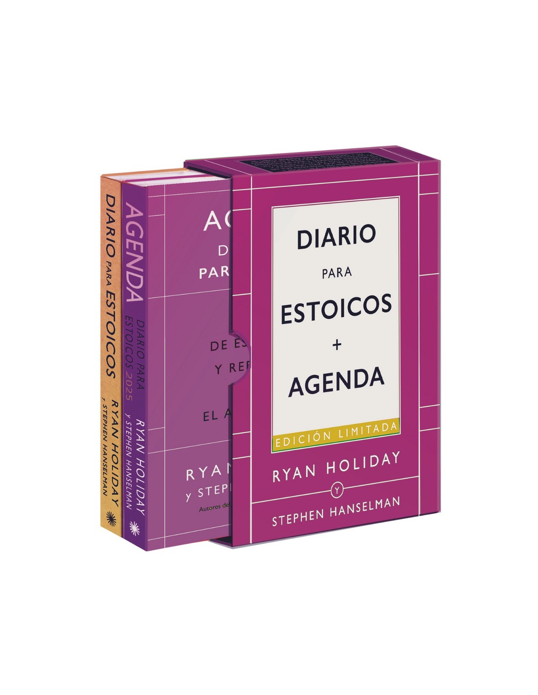 Estuche Diario para estoicos + Agenda (Edición limitada 2025)Ryan Holiday y Stephen Hanselman Estuche de impecable diseño que contiene un ejemplar del DIARIO PARA ESTOICOS y de la AGENDA. Un pack repleto de la sabiduría de aquellos grandes pensadores de la Antigüedad, que te acompañará en tus próximos 366 días de reflexión y escritura sobre el arte de vivir.El libro de Ryan Holiday, Diario para estoicos, es una guía fascinante y accesible para transmitir la sabiduría estoica a una nueva generación de lectores y mejorar nuestra calidad de vida. Desde su publicación, la obra se ha convertido en un fenómeno editorial más allá del ámbito literario.En la Agenda, los lectores encontrarán explicaciones y citas semanales para inspirar una reflexión más profunda sobre las prácticas estoicas, así como indicaciones diarias y una introducción útil que explica las diversas herramientas estoicas de autogestión. Cuenta con espacio para notas, junto con consejos para fomentar la escritura y la comprensión continua, día a día, durante todo el año.Edición limitada año 2025