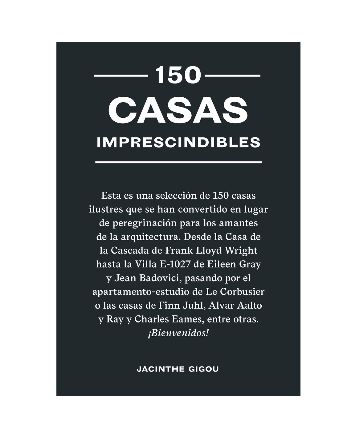 Esta es una selección de 150 casas ilustres que se han convertido en lugar de peregrinación para los amantes de la arquitectura. Desde la Casa de la Cascada de Frank Lloyd Right hasta la Villa E-1027 de Eileen Gray y Jean Badovici, pasando por el apartamento-estudio de Le Corbusier o las casas de Finn Juhl, Alvar Aalto y Ray y Charles Eames, entre otras . ¡Bienvenidos!