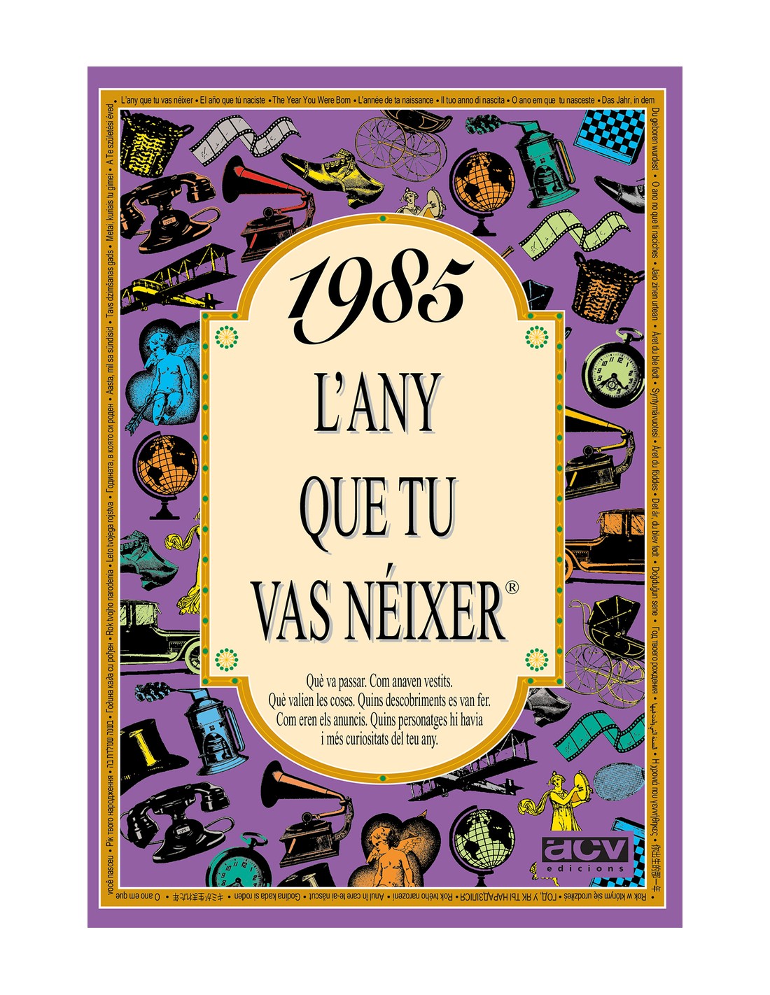 El detall ideal per felicitar un 40è aniversari. El llibre de l'any 1985 conté una acurada selecció de notícies, imatges i curiositats sobre el que va passar aquell any: com era el món, com es vestia, què es va inventar, quins eren els anuncis, les cançons i les pel·lícules del moment, quant costaven les coses, qui eren els famosos i molt més. Aquest llibre de 1985 forma part de la popular col·lecció "L'ANY QUE TU VAS NÉIXER", un regal ideal per a un aniversari o una trobada amb amics i familiars. Una idea original per sorprendre els teus convidats és col·locar a la taula el llibre de l'any en què van néixer. Veuràs com alegren l'ambient i donen lloc a converses apassionants, plenes de bons records. La col·lecció "L'ANY QUE TU VAS NÉIXER" cobreix des de 1920 fins al 2007.
