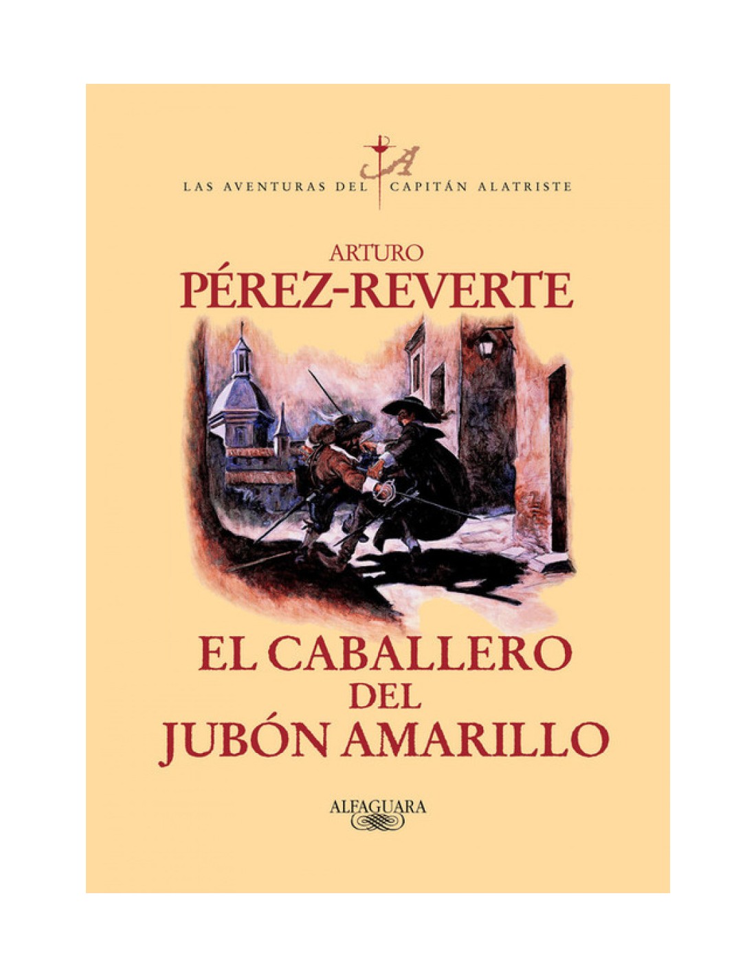 En esta quinta entrega de «Las aventuras del capitán Alatriste» Diego Alatriste e Íñigo Balboa se enfrentarán entre estocadas e intrigas palaciegas a una conspiración en la corte de Felipe IV. El caballero del Jubón amarillo se desarrolla en el mundo de los corrales de comedias del Madrid del siglo XVII. En esta ocasión Diego Alatriste volverá a cruzarse con viejos amigos y viejos enemigos, y con los personajes famosos de la época como Lope de Vega, Calderón de la Barca y el capitán Alonso Contreras. Lances, estocadas, intrigas palaciegas y aventuras amorosas salpican un relato de acción trepidante. «Don Francisco de Quevedo me dirigió una mirada que interpreté como era debido, pues fui detrás del capitán Alatriste. Avísame si hay problemas, habían dicho sus ojos tras los lentes quevedescos. Dos aceros hacen más papel que uno. Y así, consciente de mi responsabilidad, acomodé la daga de misericordia que llevaba atravesada al cinto y fui en pos de mi amo, discreto como un ratón, confiando en que esta vez pudiéramos terminar la comedia sin estocadas y en paz, pues habría sido bellaca afrenta estropearle el estreno a Tirso de Molina. Yo estaba lejos de imaginar hasta qué punto la bellísima actriz María de Castro iba a complicar mi vida y la del capitán, poniéndonos a ambos en gravísimo peligro;por no hablar de la corona del rey Felipe IV, que esos días anduvo literalmente al filo de una espada. Todo lo cual me propongo contar en esta nueva aventura, probando así que no hay locura a la que el hombre no llegue, abismo al que no se asome, y lance que el diablo no aproveche cuando hay mujer hermosa de por medio.» La crítica ha dicho...«Léxico y construcción de frases, reproducción de actitudes, tomados de vocabularios de la época y de las jácaras de Quevedo, proporcionan a esta entrega un valioso y honesto esfuerzo de recreación lingüística, que no es nada fácil, pues podría haber resultado postizo en plumas menos expertas y dispuestas a trabajar que la de Pérez-Reverte.»José María Pozuelo Yvancos, ABC Cultural «La novela reúne una buena colección de lances, raptos, tercerías, emboscadas y conspiraciones que configuran una intriga construida con la habilidad característica de Pérez-Reverte, maestro en el arte de contar una historia con la precisa gradación climática, ajustando los momentos de suspense con nuevas informaciones.»Ángel Basanta, El Cultural