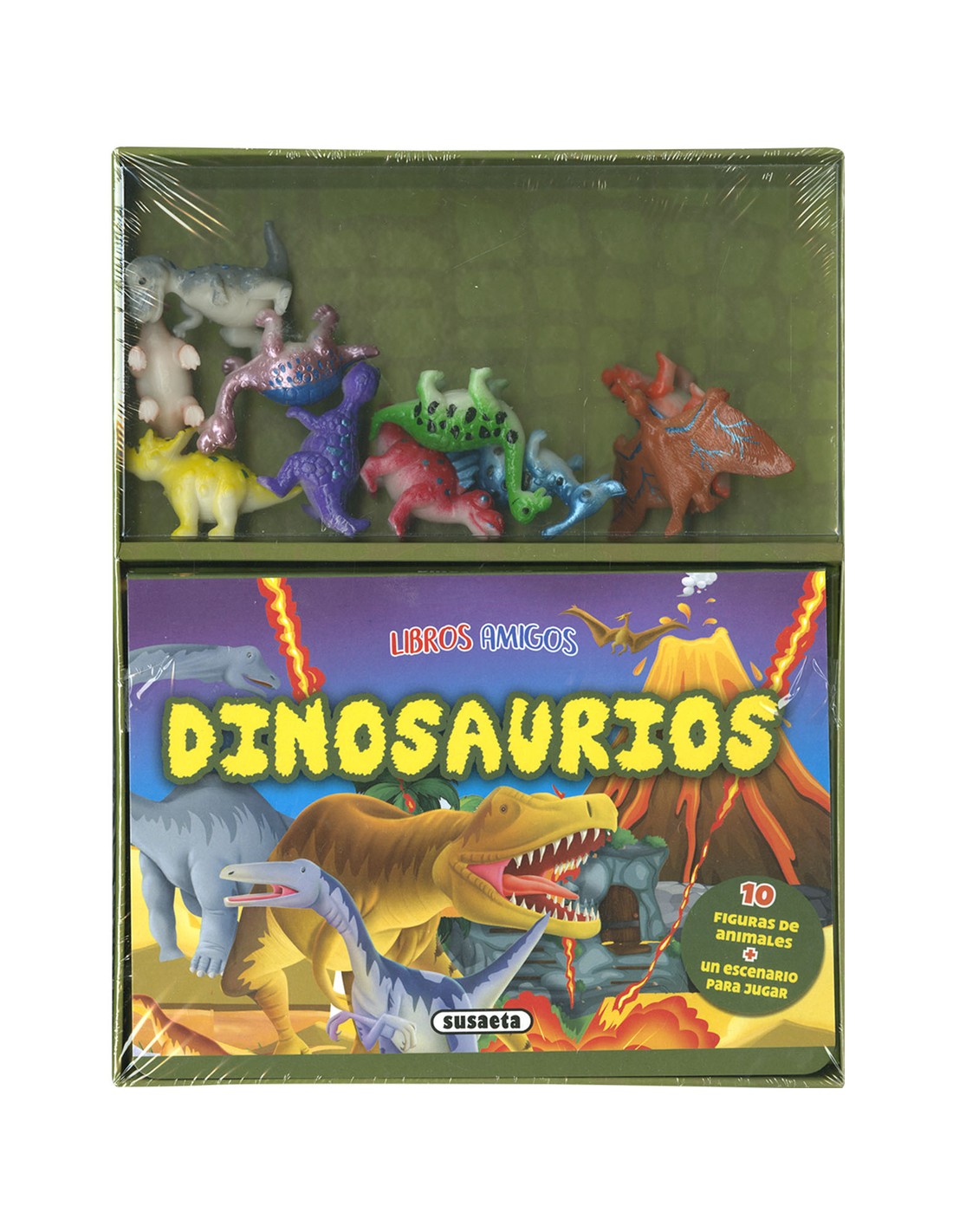 Juega y aprende con este libro sobre los dinosaurios con el que podrás conocer a los más famosos y jugar con diez de estos animales prehistóricos, ya que incluye diez figuras y un escenario para que puedas sumergirte en el pasado más remoto y fascinante.