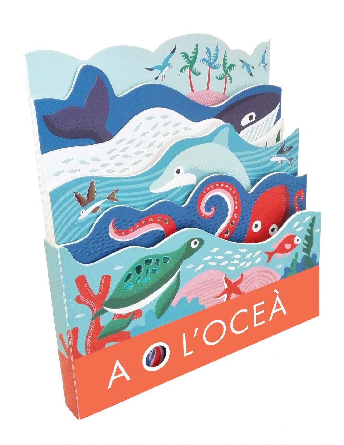 Llibres interactius de cartró encunyat i amb petits relleus en cada página per estimular el sentit del tacte dels nens i nenes. Una petita tortuga és la protagonista del títol A l'oceá. Mentre busca la seva família es creua amb balenes, pops i altres animals marins. Al bosc té com a protagonista un petit esquirol. Salta i bota pel bosc tot buscant la seva mare.