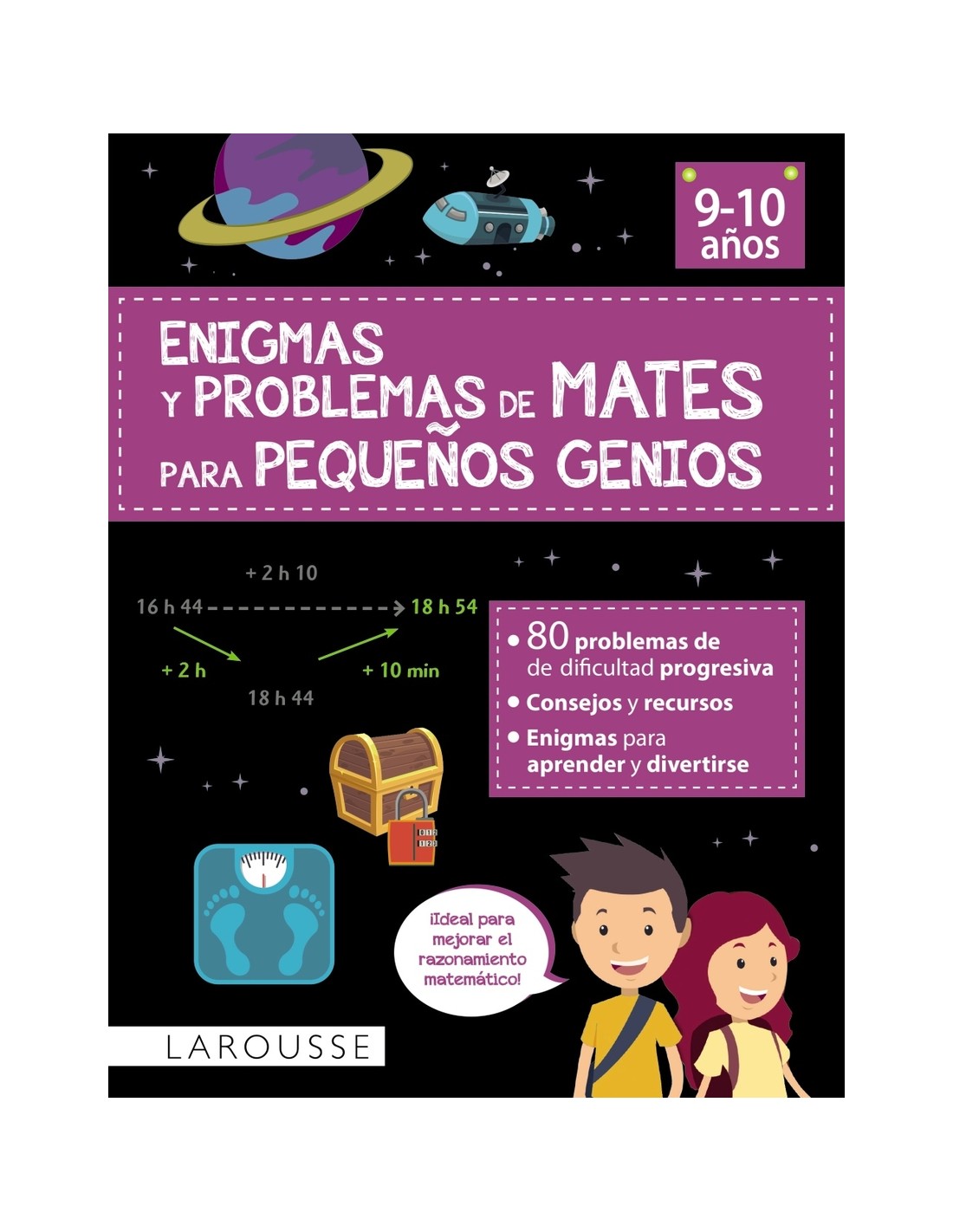 Diseñados por maestros, estos libros presentan una serie de enigmas y problemas que ayudan al niño a entender cómo debe resolverlos y así avanzar en la consolidación de las capacidades y razonamientos en el campo de las matemáticas. Las ilustraciones ayudan a resolver cada problema, visualizando los elementos a sumar, restar, multiplicar o dividir. Además de estas operaciones, los cuadernos tratan otros temas planteados como enigmas matemáticos adecuados a estas edades: los decimales, la proporcionalidad, las monedas, las longitudes, las masas, las capacidades, las horas, los perímetros y las áreas. Para repasar y consolidar los conocimientos de matemáticas de forma fácil y divertida.