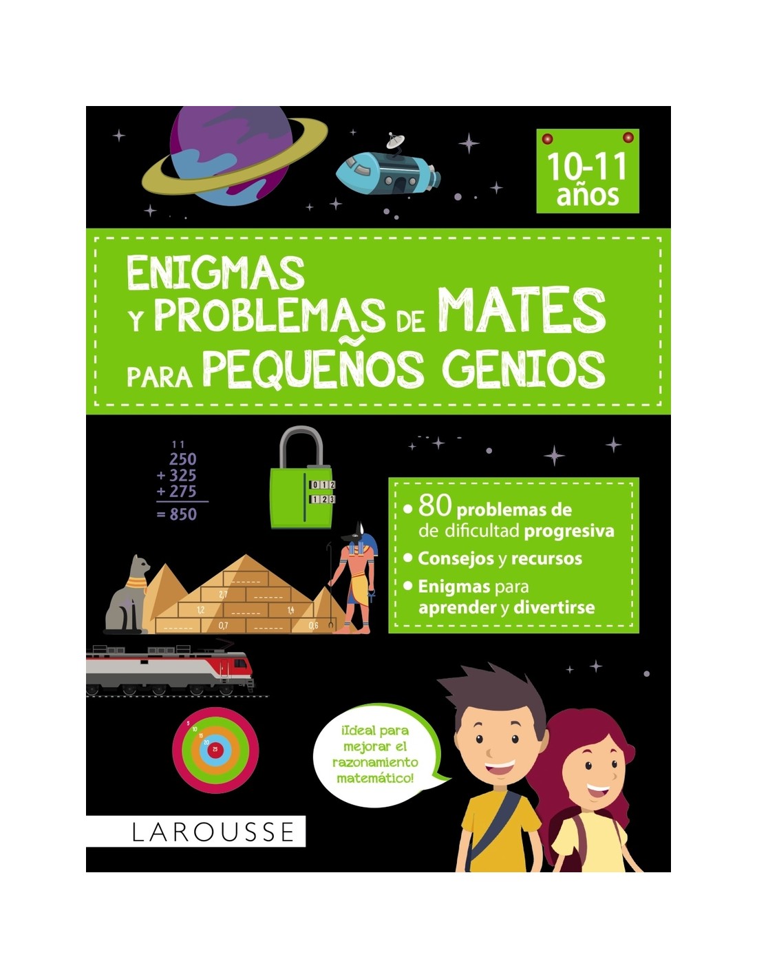 Diseñados por maestros, estos libros presentan una serie de enigmas y problemas que ayudan al niño a entender cómo debe resolverlos y así avanzar en la consolidación de las capacidades y razonamientos en el campo de las matemáticas. Las ilustraciones ayudan a resolver cada problema, visualizando los elementos a sumar, restar, multiplicar o dividir. Además de estas operaciones, los cuadernos tratan otros temas planteados como enigmas matemáticos adecuados a estas edades: los decimales, la proporcionalidad, las monedas, las longitudes, las masas, las capacidades, las horas, los perímetros y las áreas. Para repasar y consolidar los conocimientos de matemáticas de forma fácil y divertida.