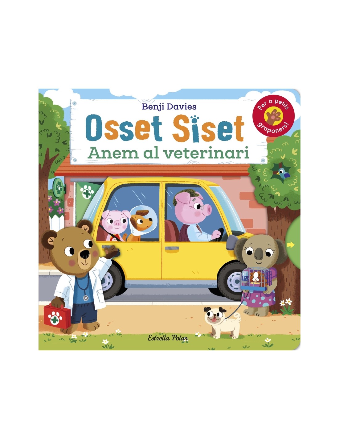 Si t'agraden els animals, t'encantarà aquest llibre! L'Osset Siset treballa a la clínica veterinària. Vols descobrir qui necessitarà la seva ajuda Acompanya'l a visitar els seus pacients i ajuda'l a fer una radiografia i un embenat en aquest divertidíssim llibre amb mecanismes per aixecar i estirar! Aquest llibre ET NECESSITA! Al girar, lliscar, aixecar i moure els mecanismes, les mans petites participen en la història. Aquest alt nivel d'interacció fomenta l'interès dels infants en els llibres, una peça clau per apassionar-los per la lectura. Un llibre ideal per a nens i nenes a partir d'1 any il·lustrat pel multipremiat Benji Davies. Títols de la col·lecció Osset Siset: El gran llibre de l'Osset Siset Osset Siset. Llibre i peluix Osset Siset. Juga i construeix Osset Siset. El meu primer llibre de memòria. Animals Osset Siset. Avui toca pizza! Osset Siset. Juguem al futbol Osset Siset. Anem amb avió! Osset Siset. Pugem al tren! Osset Siset. Un dia al castell Osset Siset. La casa encantada Osset Siset. La gran carrera Osset Siset. Mans a l'obra! Osset Siset. Emergència al volant Osset Siset. Anem de viatge Osset Siset. Anem al zoo! Osset Siset. Missió espacial! Osset Siset. Aventura submarina Osset Siset. Anem a construir! Osset Siset. Safari de dinosaures Osset Siset. Anem a jugar! Osset Siset. Aventura pirata Osset Siset. Un dia a la granja Osset Siset. Bombers al rescat! Osset Siset. Un dia a la neu Osset Siset. Bon Nadal! Osset Siset. Parc d'atraccions