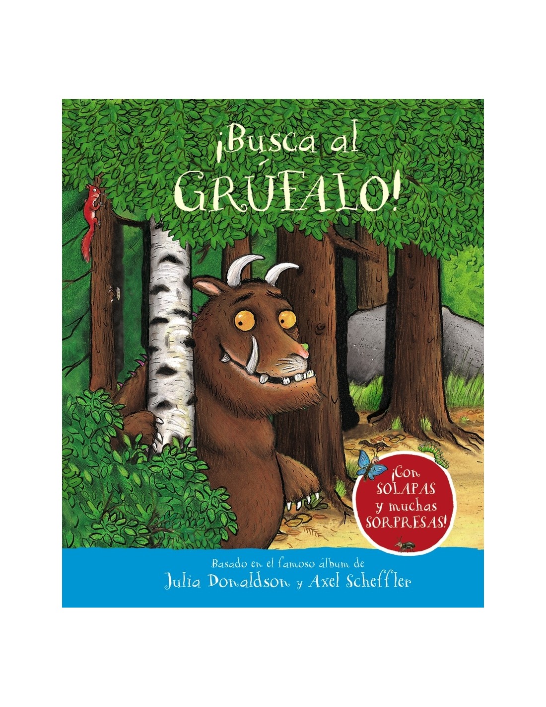 ¡Levanta las solapas para encontrar al grúfalo! El pequeño ratón lo está buscando, ¿le ayudas a encontrarlo Asómate a las rocas, mueve los arbustos, observa con atención la copa de los árboles ¡y descubre todos los secretos que esconde el bosque!