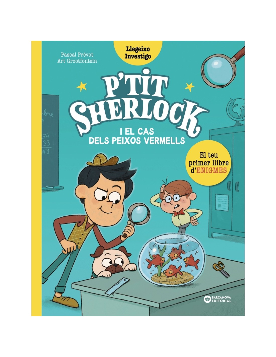 El Sherlock i el Doc descobreixen que un intrús ha entrat a l'escola en plena nit. L'endemà, es troben amb una sorpresa: a la peixera de la seva classe on abans hi havia 4 peixets, ara n'hi ha 5. El grupet, amb la teva ajuda, haurà d'investigar per resoldre el misteri! Amb molts misteris i enigmes per resoldre. Fixa't bé i troba les solucions mentre llegeixes.