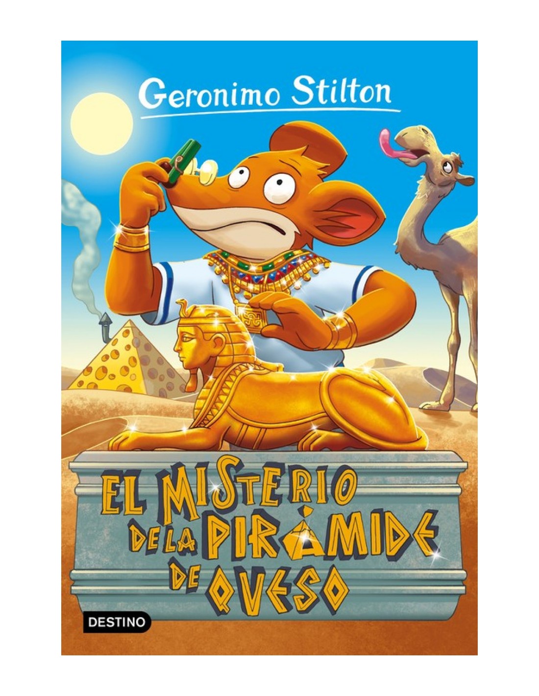 Me voy a Egipto, donde cruzo el desierto sobre un dromedario y exploro la pirámide de Keops... Aquí, entre momias, sarcófagos i jeroglíficos, descubriré el secreto de un científico que ha construido una misteriosa pirámide de color de queso!