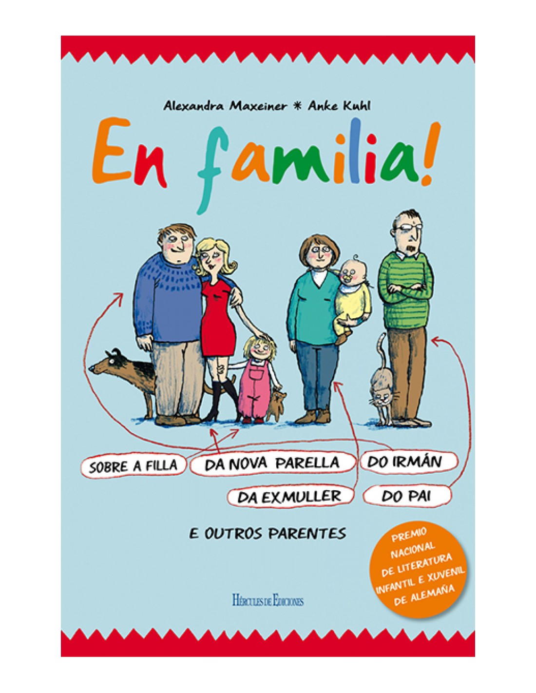 Ben pelexa ás veces coa súa irmá Lisa. Mía non ten irmáns, pero ten todo por duplicado. Jakob ten un tres cuartos de pai a quen quere moito. Carla e Moritz teñen dúas mamás e dous papás. Jule está triste e non ten ganas de ter unha nova mamá. Paula celebra o seu aniversario dúas veces ao ano. A Moritz o seu pai lle chama "parrulo". Leoníe ten a mesma voz ca a da súa nai. Pero todos teñen unha cousa en común: cada un pertence a unha familia, e como esta só hai unha no mundo.