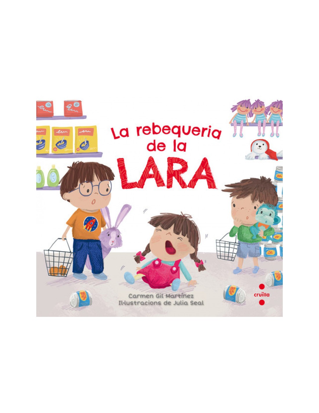 Avui, la Lara i els seus germans han anat al supermercat. Hi ha tantes coses... i la Lara les vol totes! Ha demanat a la mare que li compri una foca de peluix, i com que li han dit que no, s'enfada molt i fa una rebequeria. Peró no és l'única, en Timi també s'ha enfadat. Quin escándol que han organitzat!