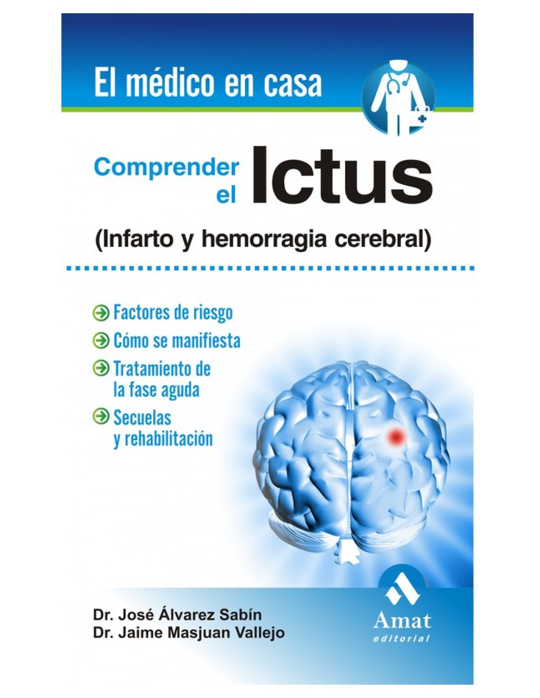 El ictus es una de las enfermedades del cerebro más frecuentes. Cada año 15 millones de personas de todo el mundo sufren un ictus. De ellas, 5 millones mueren y otros 5 millones sufren una discapacidad permanente, lo que convierte al ictus en la primera causa de discapacidad física y mental en todo el mundo. Todo ello tiene una repercusión muy importante para las familias y la sociedad. Conocer y comprender los distintos tipos de ictus, cuales son los factores que pueden favorecer su aparición, cómo se manifiesta y cómo reaccionar es fundamental para poder prevenirlo y para evitar el daño o lesión cerebral. Asimilar la información que se da en este libro puede significar la diferencia entre la recuperación o quedar con secuelas el resto de la vida y, también en muchos casos, la diferencia entre la vida y la muerte. .Será capaz de identificar con rapidez los síntomas del ictus, lo que es esencial para un tratamiento eficaz de la fase aguda y la evitación de secuelas .Tendrá a su disposición una serie de recomendaciones muy útiles y prácticas sobre la conducta apropiada a seguir en estos casos . Obtendrá una evaluación rigurosa de los avances terapéuticos que han mejorado significativamente las perspectivas de la enfermedad .Contará con la experiencia de dos de los mejores especialistas de nuestro país en el abordaje del ictus a todos los niveles