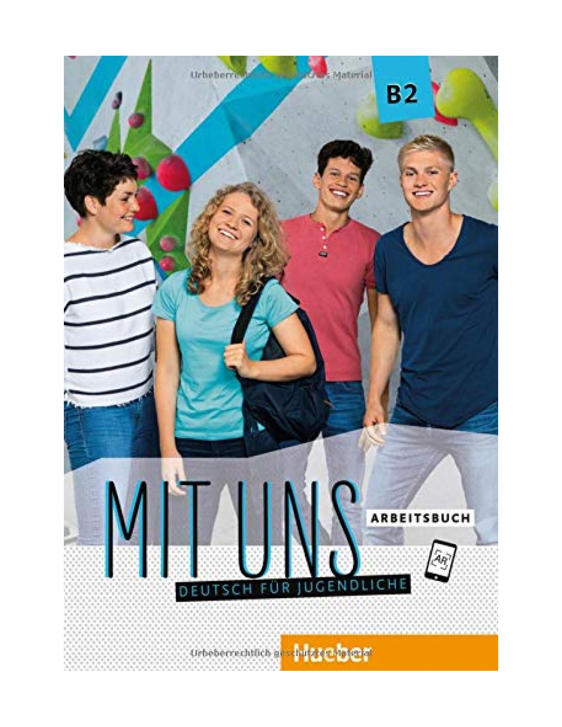 Libro de ejercicios que corresponde al nivel europeo B2 perteneciente a la nueva serie Mit uns, curso que prepara a los alumnos adolescentes para los exámenes del DSD I, Goethe-Zertifikat B2 - C21