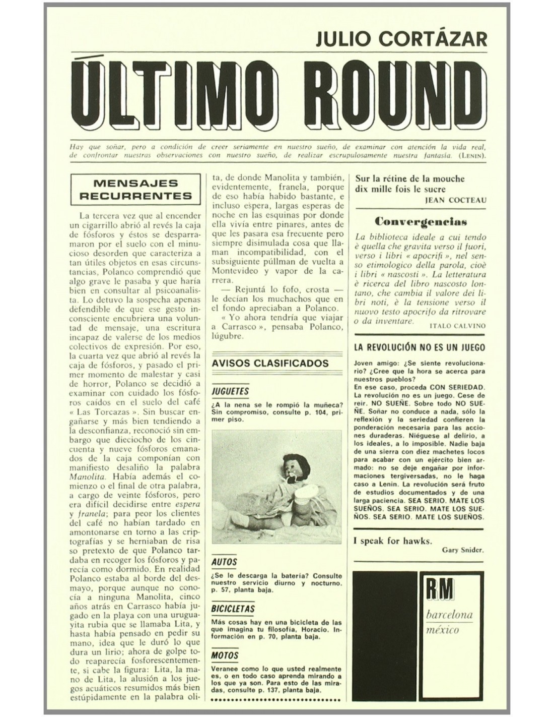 Segundo de los libros-almanaques de Julio Cortázar, se publicó por primera vez en México en 1969 y fue diseñado por Julio Silva. Cortázar se respondía a sí mismo en una autoentrevista sobre el contenido: "à en Último round hay un Homenaje a Alain Resnais' que se puede leer permutatoriamente, lo que modifica cada vez el sentido al mismo tiempo que conserva el clima inicial de L'année dernière à Marienbad'. Hay también una despedida a Teodoro W. Adorno, que se ha convertido al catolicismo;hay varios cuentos, largos y cortos, hay una especie de diario de un día de vida en mi aldea provenzal de Saignon. Hay una defensa de Salvador Dalí (¡oh!);hay un examen general de los problemas del erotismo en la expresión literaria latinoamericana;hay un ensayo sobre el cuento breve y sus alrededores, cuestión que me sigue preocupando y sobre la cual no se ha escrito gran cosa. ¿Te bastan esos botones, o necesitás todo el costurero?ö.