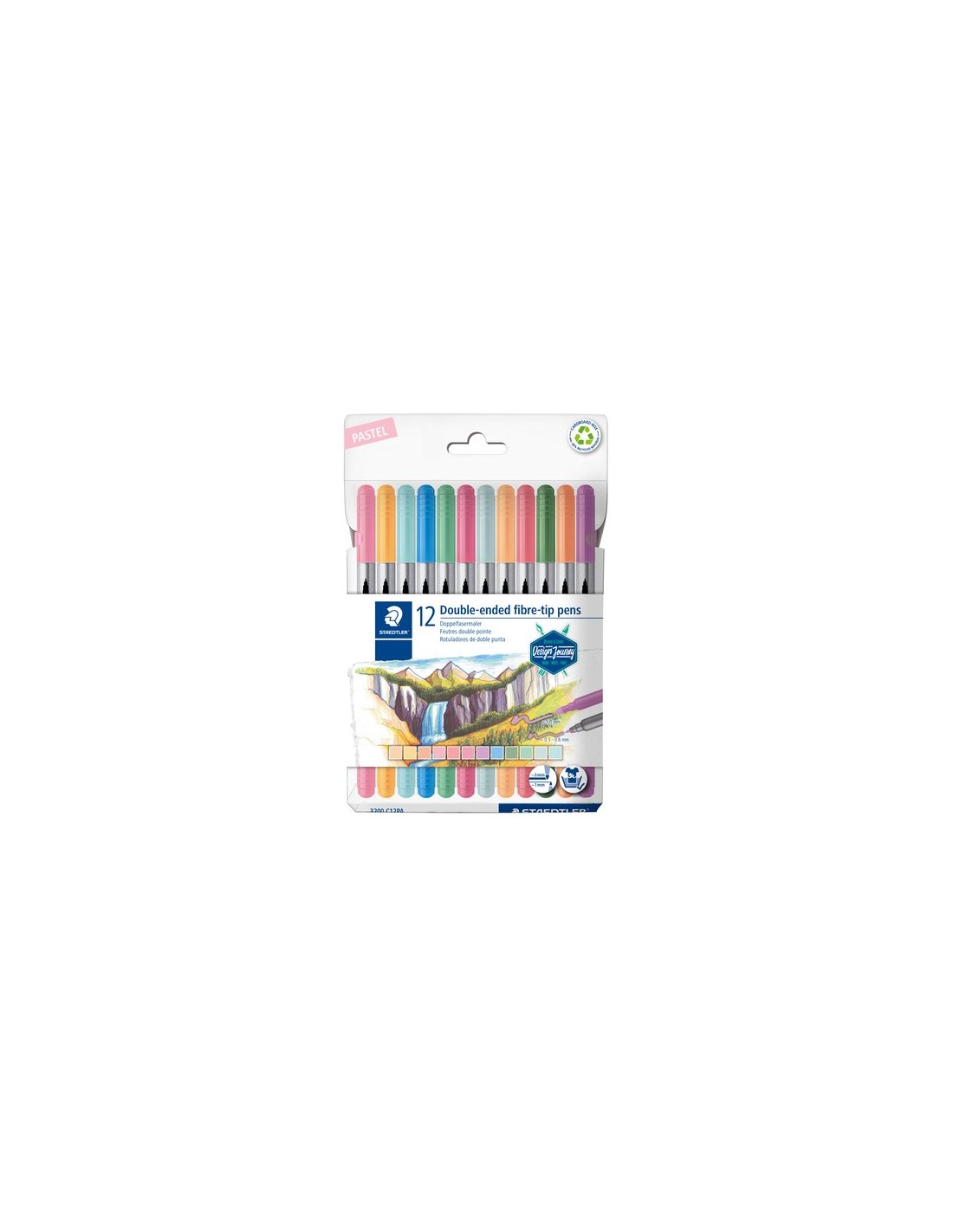 ESTUCHE CARTÓN CON 12 ROTULADORES DOBLE PUNTA COLORES PASTEL STAEDTLER 3200 C12PA
