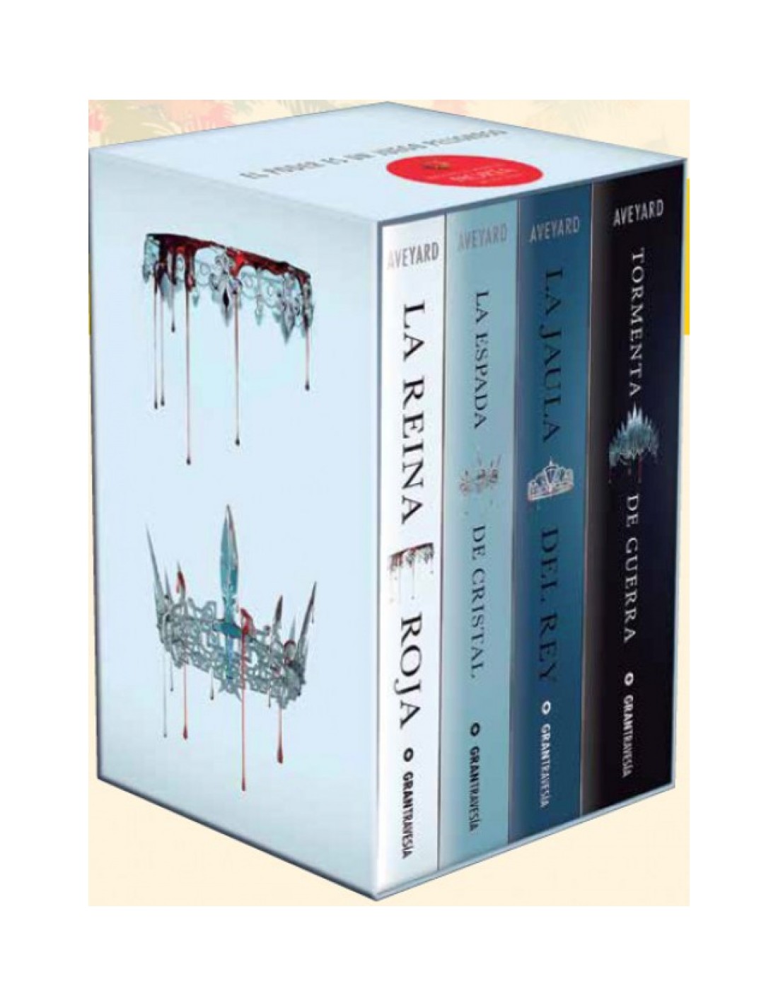 En una sociedad dividida por el color de la sangre, los Rojos luchan por sobrevivir bajo la sombra de los Plateados, «superhumanos» con poderes terribles que les permiten manejar el mundo a su antojo. Pero cuando Mare Barrow, una simple joven Roja, descubre que tiene también esos poderes, buscará la forma de cambiar el dominio de los Plateados para siempre. Pero en este reino, el poder es un juego peligroso, y la única certeza es la traición. Este estuche incluye todos los volúmenes de la tetralogía: La reina Roja, La espada de cristal, La jaula del rey y Tormenta de guerra.