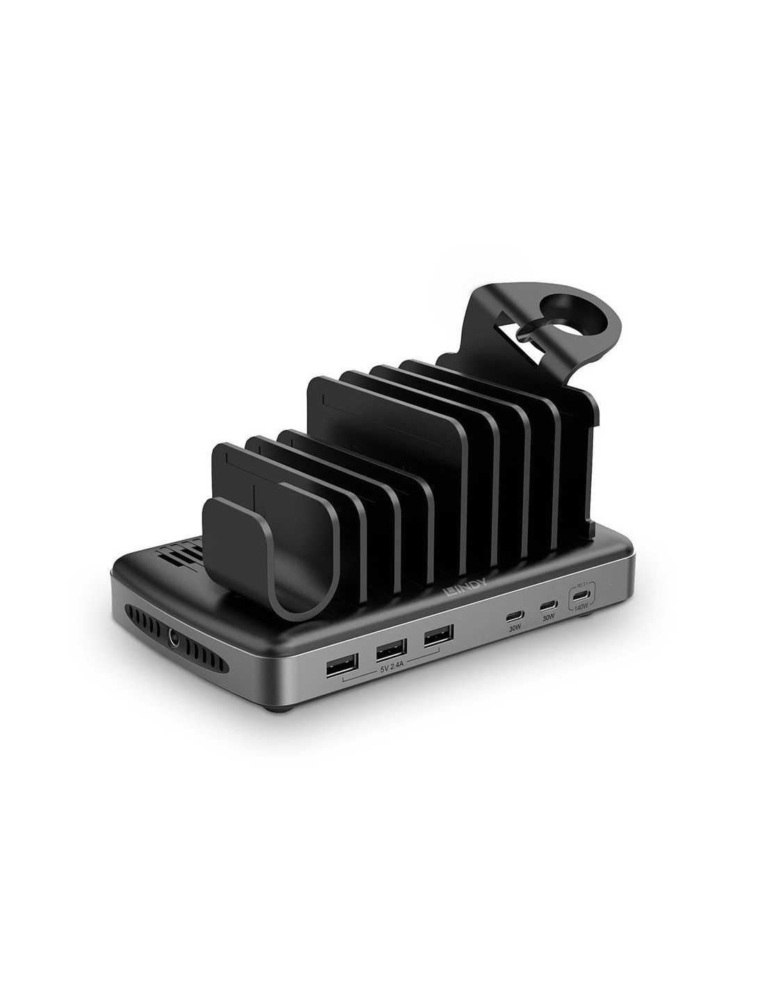 73436 organizador para estación de carga Independiente Aluminio, Plástico Negro, Gris