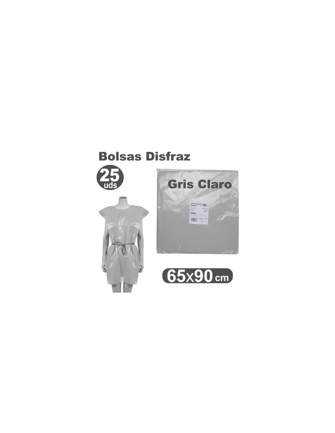 Pack/25 bolsas plastico para disfraces 65x90cm gris claro