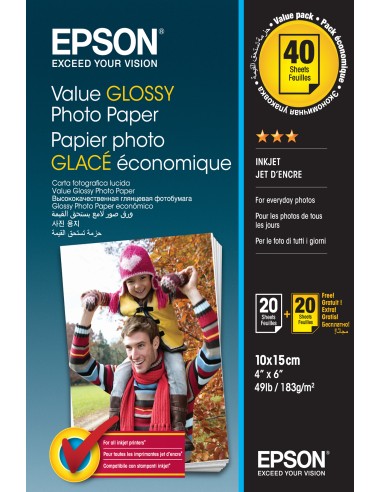 Value Glossy Photo Paper - 10x15cm - 2x 20 Hojas (BOGOF)