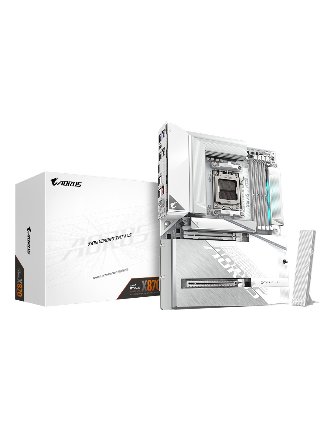 X870 AORUS STEALTH ICE Placa Base Compatible con procesadores AMD Ryzen 9000, VRM digital de 16+2+2 fases, hasta 8200 MHz DDR