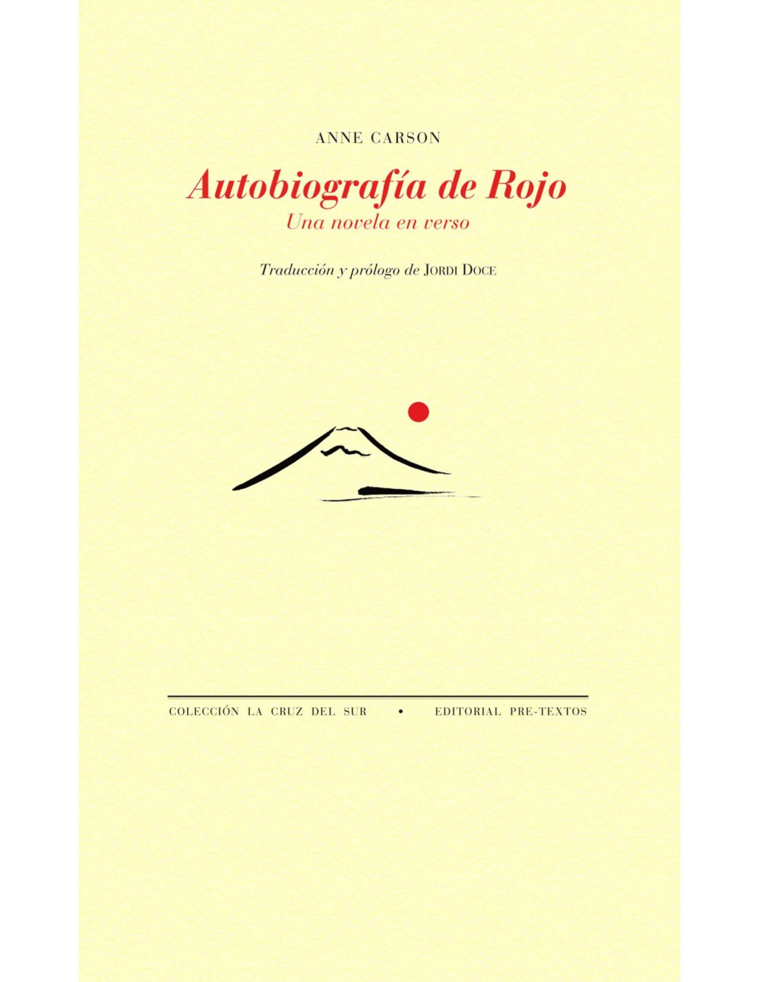 Amaba los relámpagos Vivía en una isla Su madre era Ninfa de un río que corría hacia el mar Su padre una herramienta De corte dorada Los antiguos escolios dicen que Estesícoro dice que Gerión tenía seis manos y seis pies y alas Era rojo y Su extraño ganado rojo despertaba envidia Llegó Heracles y Lo mató por su ganado También al perro «Todo lo que se sabe de Gerión», de Anne Carson. Anne Carson nació en Toronto (Canadá) en 1950. Poeta, ensayista, traductora y catedrática de estudios clásicos, ha dado clase en las universidades de McGill, Michigan y Princeton. Su tesis doctoral sobre Safo se publicó en 1986 con el título de Eros the Bittersweet. Desde entonces ha publicado varios volúmenes misceláneos de poemas y ensayos, entre ellos Glass, Irony and God (1992), Plainwater: Essays and Poetry (1995), Men in the Off Hours (Premio Griffin de poesía, 2000), The Beauty of the Husband (2001, Premio T.S. Eliot de poesía), Decreation. Poetry, Essays, Opera (2005) y NOX (2010). Ha reunido sus traducciones de Safo en el volumen If Not, Winter (2002). También ha traducido la Orestíada de Esquilo y varias obras de Eurípides (su versión de Ifigenia en Táuride es de 2014). Su novela en verso Autobiography of Red se publicó en 1998 con gran éxito crítico y comercial. Quince años más tarde, en 2013, vio la luz una segunda parte con el título de Red Doc>. En España se han publicado hasta la fecha La belleza del marido (un ensayo narrativo en 29 tangos) (Lumen, 2003;trad. Ana Becciu), Hombres en sus horas libres (Pre-Textos, 2007;trad. Jordi Doce), Decreación (Vaso Roto, 2014;trad. Jeannette L. Clariond) y Eros: poética del deseo (Dioptrías, 2015;trad. Inmaculada Pérez Parra).