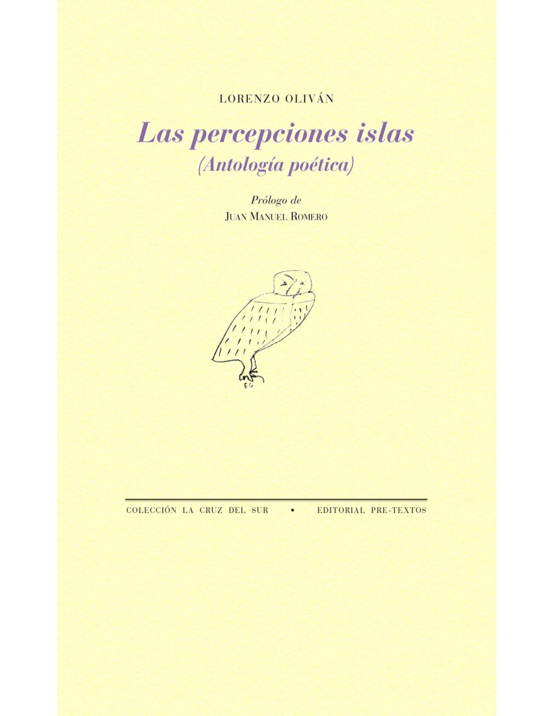 La intensidad no dura. Hasta la luz, para poder pensarla, sentirla como luz, se aleja a cada instante de sí misma. Quiero que te hagas noche, que halles en ti la negación que afirma, igual que en mi visión se borra la raíz para ser ella y otra, para mirar más lejos, para llegar más alto. Nos hace falta olvido sobre el que levantar lo memorable. Las islas nos seducen, pero también las percepciones islas. «Las percepciones islas», Lorenzo Oliván Lorenzo oliván (Castro Urdiales, Cantabria, 1968) se licenció en Filología Hispánica en la Universidad de Oviedo. Es autor de los libros de poemas Visiones y revisiones (Premio Luis Cernuda), Único norte (Pre-Textos, 1995) Puntos de fuga (Visor, 2001, Premio Internacional Fundación Loewe, 2001), Libro de los elementos (Visor, 2004, Premio Internacional Generación del 27), Nocturno casi (Tusquets, 2014, Premio Nacional de la Crítica 2015 y I Premio de las Letras Ciudad de Santander) y Para una teoría de las distancias (Tusquets, 2018). Reunió sus libros de aforismos y fragmentos en Dejar la piel. Pensamiento y visión (Pre-Textos, 2017). Ha traducido a John Keats (Belleza y verdad, Epístolas y otros poemas) y a Emily Dickinson (La soledad sonora). Coeditó Espacio Hierro. Medio siglo de creación poética de José Hierro (2001) y publicó el ensayo José Hierro y el ritmo: la música por dentro. Codirigió la revista de literatura y arte Ultramar. Ha editado en Pre-Textos tres volúmenes de Poesía con Norte. Los poetas y sus poéticas, sobre un ciclo anual de poesía que dirigió en Santander con ese mismo título.