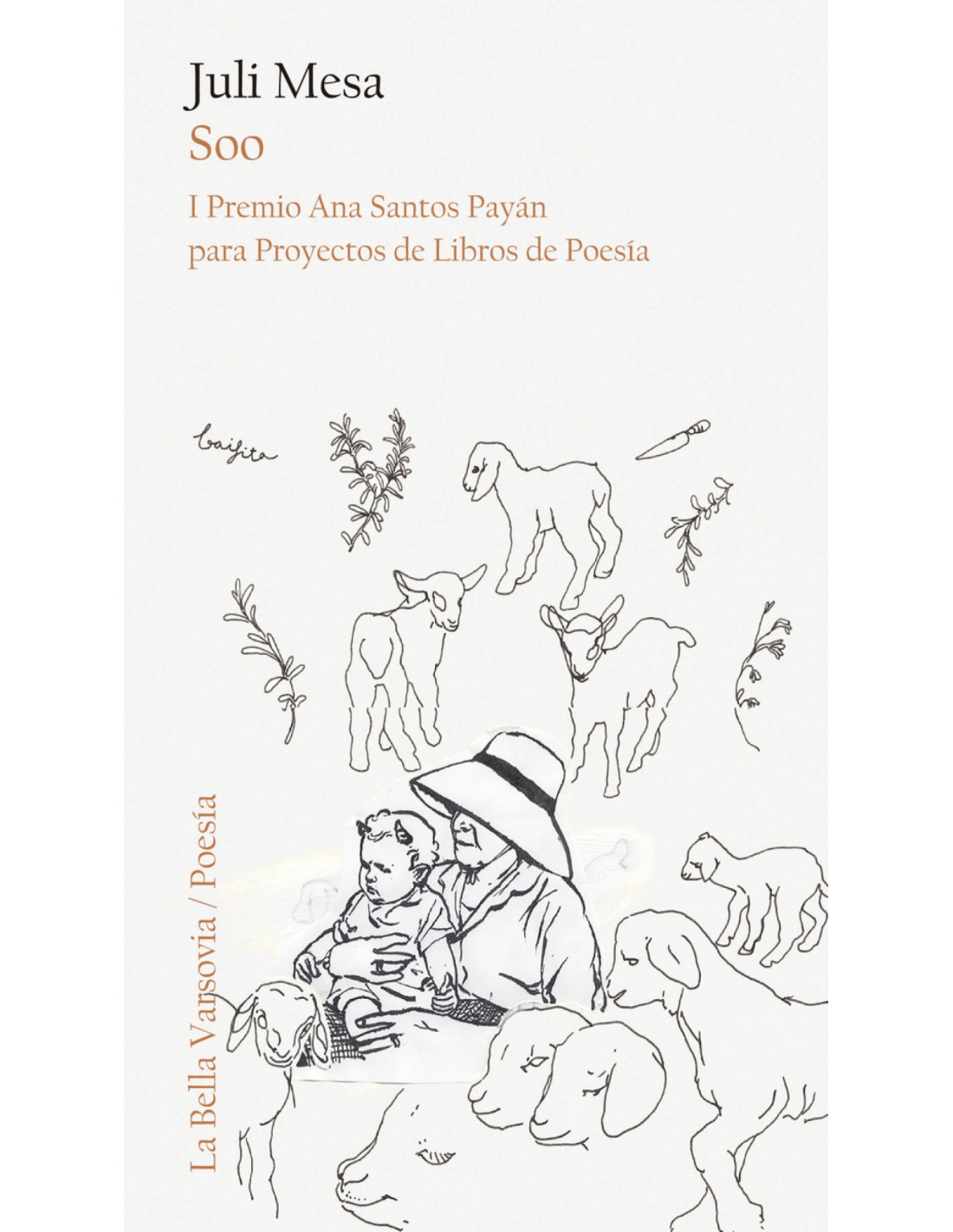 Poemas acerca de quiénes somos, cómo nos vinculamos con la memoria que nos conforma y con el lenguaje que nos permite nombrar y huir.Las conversaciones entre Mamá y Au. Abuela, que también está como «un cuerpo vacío sobre este escenario», y Abuelo, que «hoy tampoco era su marido». Las manos alienígenas. Plantas que son quesitos. Casas para vivir o para trabajar o para sobrevivir. María y Julia y Dolores y Delfina y Carmen y Candelaria y el Rubén. Los deditos del pie de la virgen y el pan en el caldo y las moscas en la pared. Poemas, balbuceos, perras y berros, un reggaetón para Marianne Moore y una cita de Marianne Moore: «You are not male / or female, but a / plan».¿Qué cabe en un libro de poemas Por lo pronto, todo cuanto sucede y todo cuanto podría suceder --sí o no- en Soo, pueblo de Teguise, centro del mundo, espacio con raíces y con sig nificados propios. Desde Soo Juli Mesa plantea estos poemas acerca de quiénes somos, de qué manera nos transformamos en quienes somos, quiénes nos precedieron y quiénes nos acompañan, cómo nos vinculamos con la memoria que nos conforma y con el lenguaje que nos permite nombrar o huir. Un libro de poemas que discute qué entendemos por error, qué entendemos por identidad, qué entendemos por poesía: Soo es una obra destinada a perdurar. Soo, de Juli Mesa, obtuvo por unanimidad el I Premio Ana Santos Payán para Proyectos de Libros de Poesía. Un jurado compuesto por Luna Miguel, Raúl Quinto y Elena Medel celebró esta «propuesta torrencial expandida entre géneros, en un potentísimo dialogo con la poesía latinoamericana, y que trabaja desde el lenguaje - desde un idioma propio, que toma cuerpoen la oralidad-sobre la memoria y nuestro lugar en el origen»