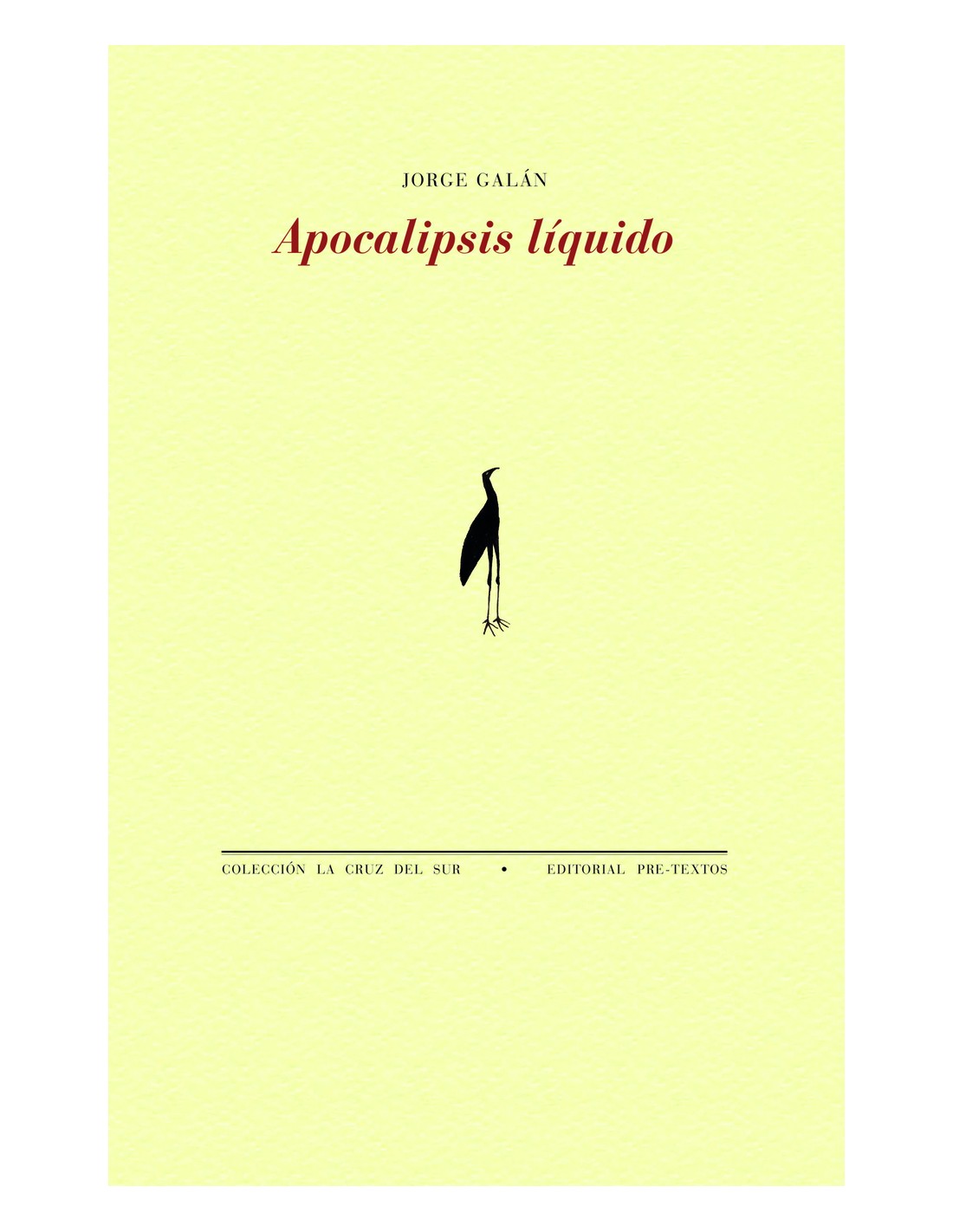 Este es mi cuerpo derrotado asomando la cabeza a sus trescientas ventanas, este es mi reflejo en su taza de té, y mi lengua sobre sus ojos grises para siempre, este es mi idioma de alabastro y ceniza en sus oídos calientes como estufas en el invierno. Esta es mi hacha de fuego sobre sus columnas de abeto y de niebla. Esta es mi jauría de perros sin pelaje tras sus conejos. Esta es mi migración de cóndores inauditos estrellándose sobre su horizonte de acantilados y de olas. Óyeme bien, escucha cómo quiebro todas tus puertas, cómo te arrullo para hacerte caer, cómo te canto una canción de cuna y te suelto sobre el mar más hermoso de la tierra. Observa cómo me inclino para decir nuestra oración de la mañana, ese silbido que hace crecer volcanes imposibles en el ojo de la gaviota que se aleja. Fragmento de "La casa" Apocalipsis líquido se divide en siete partes de siete poemas, y cada una pretende contar un aspecto de lo que en su conjunto forma la sociedad donde el autor habita. El Salvador sigue siendo un país acosado por diversas clases de violencia, y donde los muertos forman parte de la cotidianidad tanto como los vivos, y la oscuridad y el amor se han mezclado como la leche y la harina en un pastel. Como un reflejo de la idiosincracia local, en el libro se juntan poemas de diversas temáticas, que alcanzan lo social, lo político, lo amoroso, e incluso, lo paranormal. Jorge Galán (San Salvador, 1973) es narrador y poeta. Ha publicado los libros de poesía Ruido (Pre-Textos);Medianoche del mundo;El círculo;o Breve historia del alba, entre otros. Como narrador han visto la luz sus novelas La habitación al fondo de la casa (Planeta MX);Noviembre (Tusquets), y la trilogía El país de la niebla (Océano Gran Travesía). Ha obtenido el Premio José Emilio Pacheco de la FIL de Guadalajara por Equinoccio;el Premio de la Real Academia Española por la novela Noviembre. Y otros galardones como el Premio Casa de América de Poesía;el Premio Iberoamericano para obra publicada Jaime Sabines en México;el Premio Internacional Antonio Machado;o el Premio Adonais. Sus libros han sido traducidos a diversos idiomas y publicadas por editoriales de reconocido prestigio.