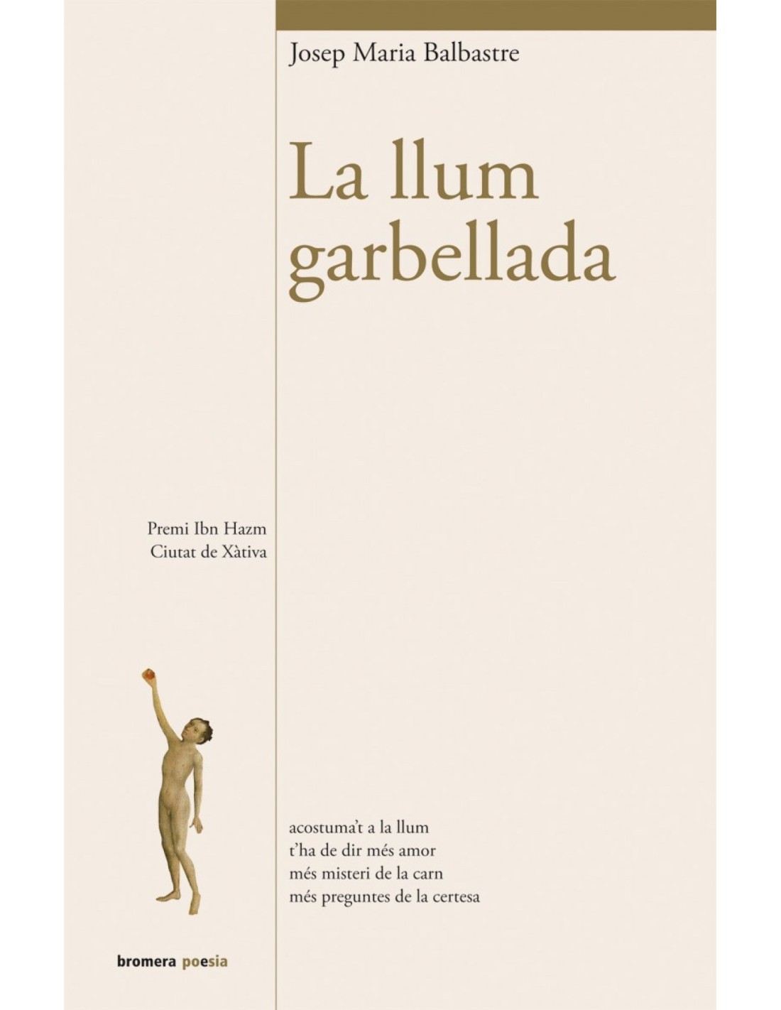 Josep Maria Balbastre (R.tova, 1964) inicià la seva vida literària l'any 2004 amb el Premi Francesc Bru. El 2006 obtingué el Premi Antoni Ferrer i el 2007, el Premi Manuel Rodríguez Martínez amb el poemari Gradual, obra distingida també amb el Premi de la Crítica dels Escriptors Valencians 2009. Aquell mateix any va guanyar el Certamen Nacional de Poesia Maxi Banegas. Ha participat en els volums col·lectius Ponts de paraules i Totes les baranes dels teus dits. Una petita mostra de la seva obra ha estat traduïda al castellà i al portuguès. Forma part del col·lectiu Saforíssims, SL, i manté el blog lletrA nuA. Amb aquest poemari va obtenir el XXXI Premi Ibn Hazm de Poesia - Ciutat de Xàtiva.