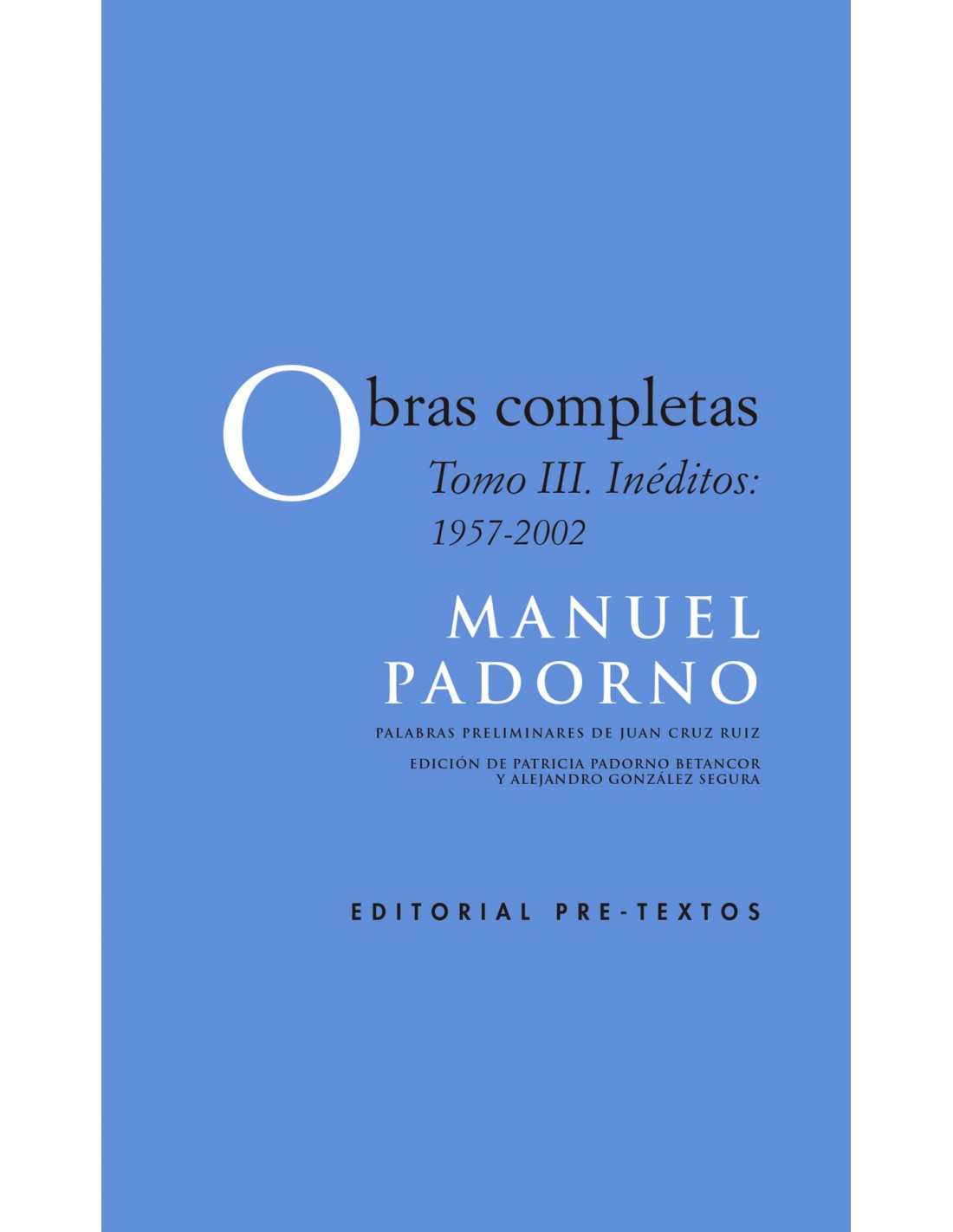 Quiero romper al alba mi estatura, mis cabellos, mis manos, mi alegría. Quiero saber si ha de llegar el día de merecer la vida o la basura. Quiero saberlo por mi calle ardiendo, quiero saberlo por tu nombre arriba, quiero saberlo hasta la siempre viva sangre que se me está siempre muriendo. Ya nunca más seré niño conmigo, quiero saber por qué se dio a la muerte crecida Dios, amor o paz, amigo. Ya salgo del taller con mi condena, la agito como un pájaro sin suerte llamado amor desde la antigua arena. «Cuando ahora, como en este volumen y en los anteriores de su obra completa, se da noticia de todo lo que escribió y quedó póstumo, es cuando sabemos que de noche y de día nos estuvo engañando. Ese Padorno que se iba por las noches en busca de conversación y de tabaco se quedaba en realidad en casa escribiendo lo que ahora es un monumento de generosidad hacia los suyos, hacia su tierra y hacia la poesía. (...) En este volumen hay unos versos suyos que dicen: ?Dejé los libros sobre la misma / playa y comencé a leer en otro / libro abierto de par en par: la vida humana?. Quien toca este libro toca todos los libros de este hombre, y toca también su alma, su voz desgarrada, su fruto de mar, de océano vital inabarcable orilla.» Juan Cruz