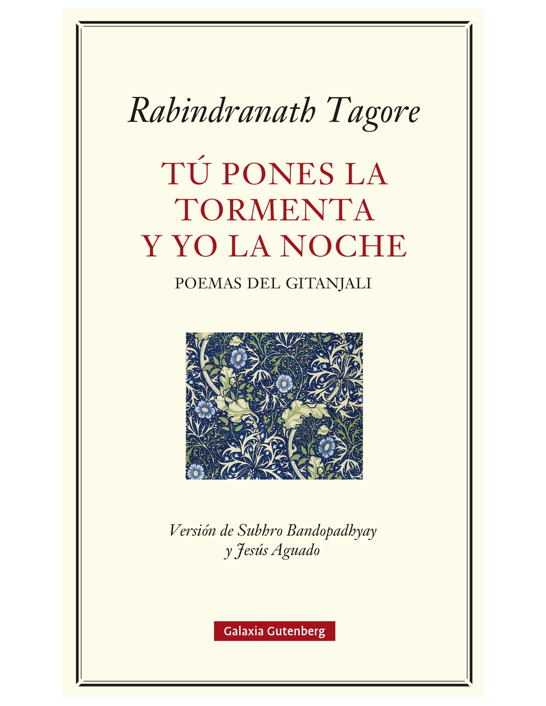 El gran poeta bengalí Rabindranath Tagore (1861-1941) consigue, con un estilo sencillo y hondo a la vez, en una síntesis milagrosa de folclore indio, textos sagrados, cultura occidental y música y arte universales, transmitir un legado de genuina relación con lo luminoso, antesala de la iluminación que limpia el mundo de sombras e intereses oscuros. Su literatura se halla tan cerca del latido primordial y del corazón de los seres vivos, tan entreverada de misterios naturales y de invocaciones a la divinidad, que hipnotiza desde la primera lectura. Esta selección de su célebre Gitanjali está dividida en dos secciones: poemas amorosos y de la naturaleza, y poemas místicos. Difícil distinguir, en todo caso, entre el sentimiento que produce la inminente llegada del amado o de la amada, el derivado de una tormenta monzónica que pone a temblar los bosques y los corazones o el de un loto que se abre como metáfora del ciclo de la existencia, y el que prende en uno cuando es rozado por la presencia (o la ausencia) divina. Los poetas Jesús Aguado y Subhro Bandopadhyay consiguen, con esta soberbia traducción hecha directamente del bengalí, que Tagore llegue a nosotros tan vivo y poderoso como el primer día.