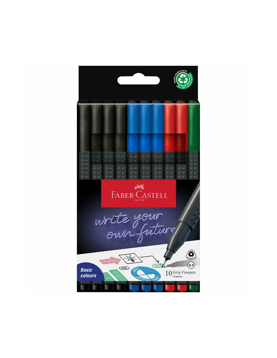 Grip Finepen rotulador de punta fina Fino Negro, Azul, Verde, Rojo 10 pieza(s)