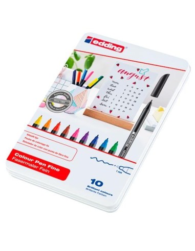 EDDING ROTULADOR 1200 PUNTA FINA COLORES SURTIDOS ESTUCHE METÁLICO 10 UD