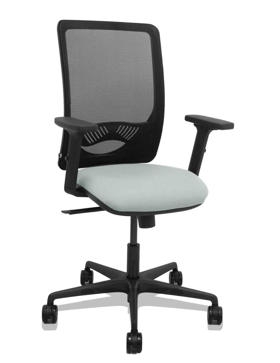 Silla Zulema sincro malla negra asiento bali gris claro brazos 2D ruedas 65mm