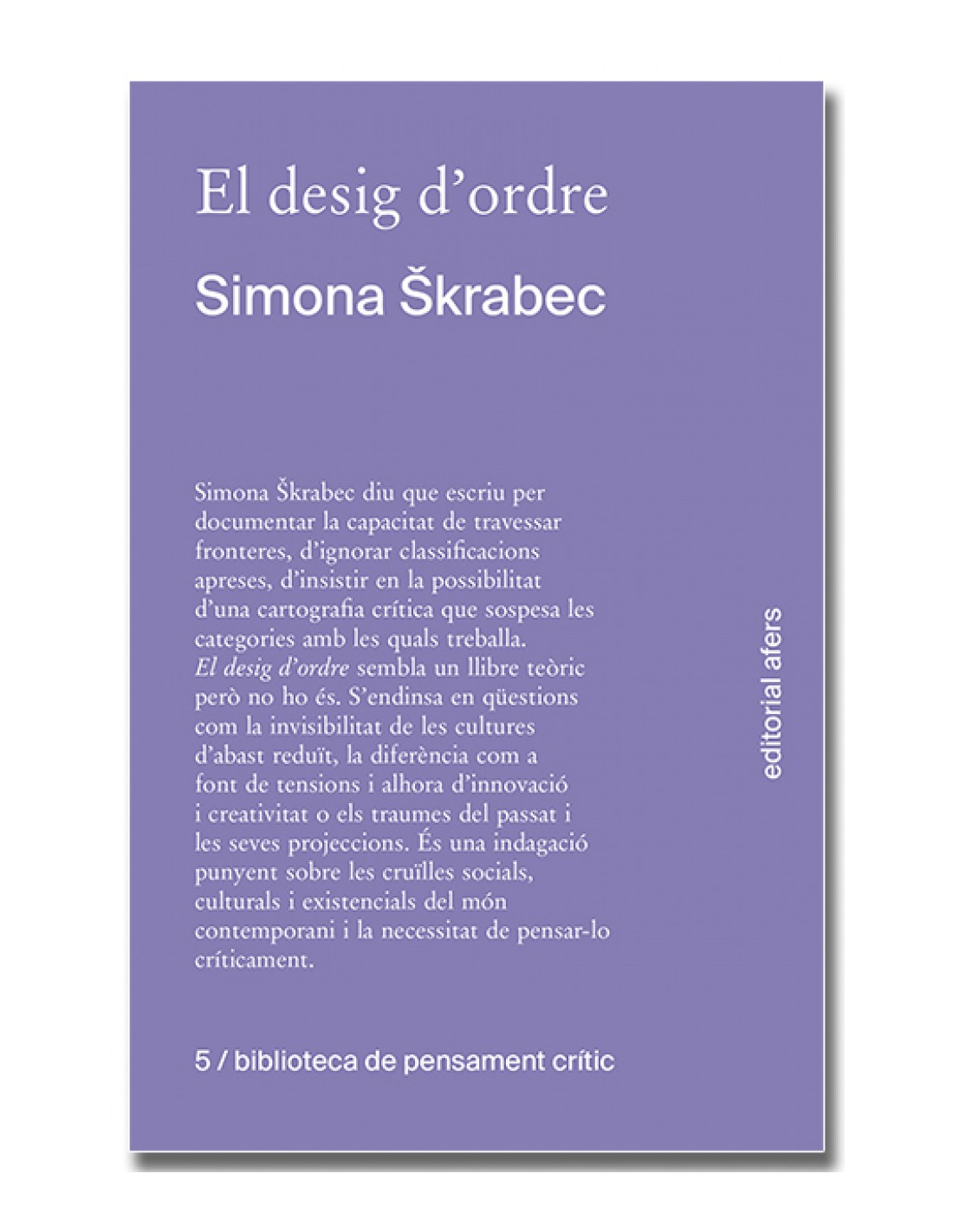 Simona krabec diu que escriu per documentar la capacitat de travessar fronteres, d'ignorar classificacions apreses, d'insistir en la possibilitat d'una cartografia crítica que sospesa les categories amb les quals treballa. El desig d'ordre sembla un llibre teòric però no ho és. S'endinsa en qüestions com la invisibilitat de les cultures d'abast reduït, la diferència com a font de tensions i alhora d'innovació i creativitat o els traumes del passat i les seves projeccions. És una indagació punyent sobre les cruïlles socials, culturals i existencials del món contemporani i la necessitat de pensar-lo críticament.