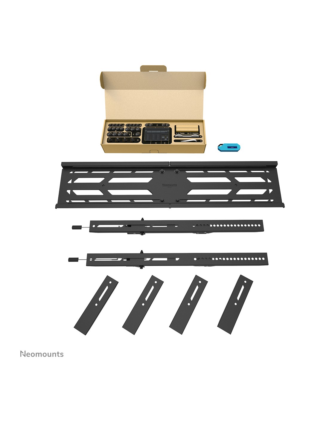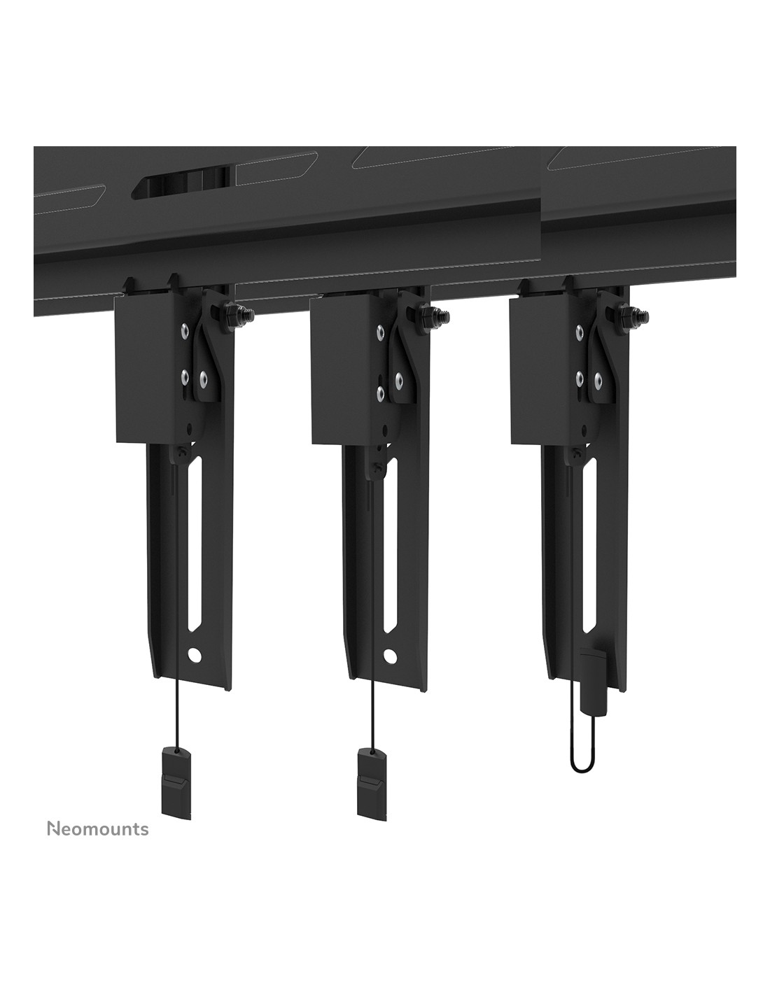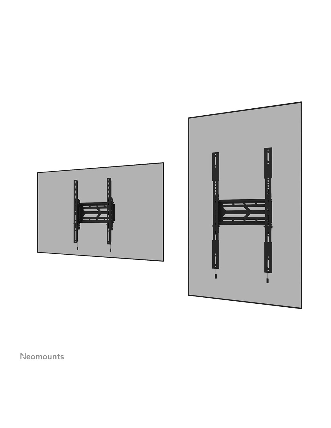 El Neomounts WL30S-950BL19 es un soporte de pared fijo de alta resistencia para pantallas planas de hasta 110" con una capacidad de peso máxima de 160 kg. Es posible instalar la pantalla tanto en orientación vertical como horizontal. El soporte cuenta con soportes individuales ajustables en altura y dispone de ajuste de nivel para una instalación perfecta.