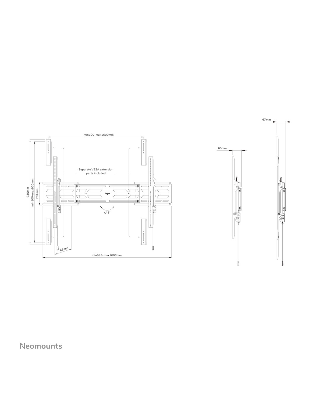 - 893 - 1600 mm