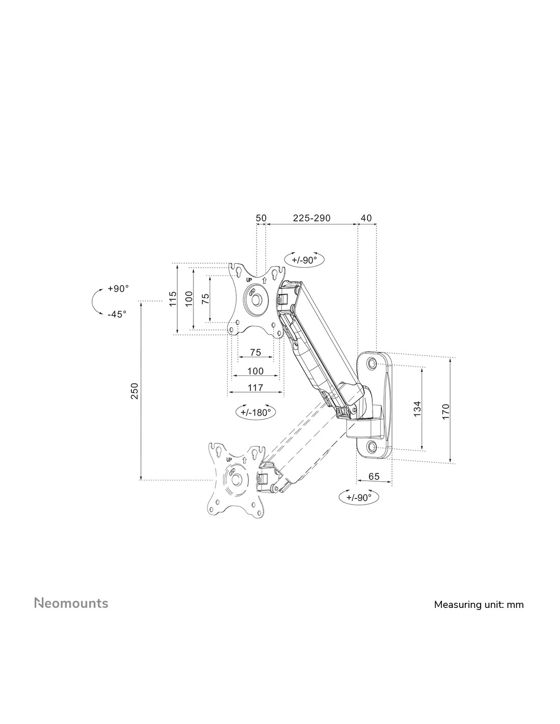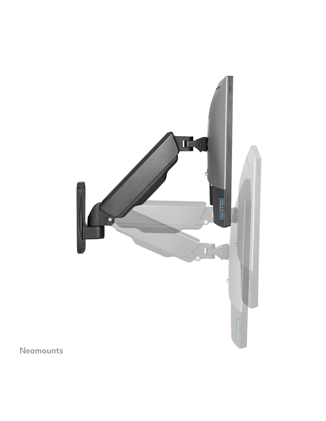 El Neomounts WL70-440BL11 es un soporte de pared de movimiento completo para pantallas planas de hasta 32" con una capacidad de peso máxima de 9 kg. La tecnología versátil de inclinación (135°), rotación (360°) y giro (180°) le permite crear el ángulo de visión óptimo.