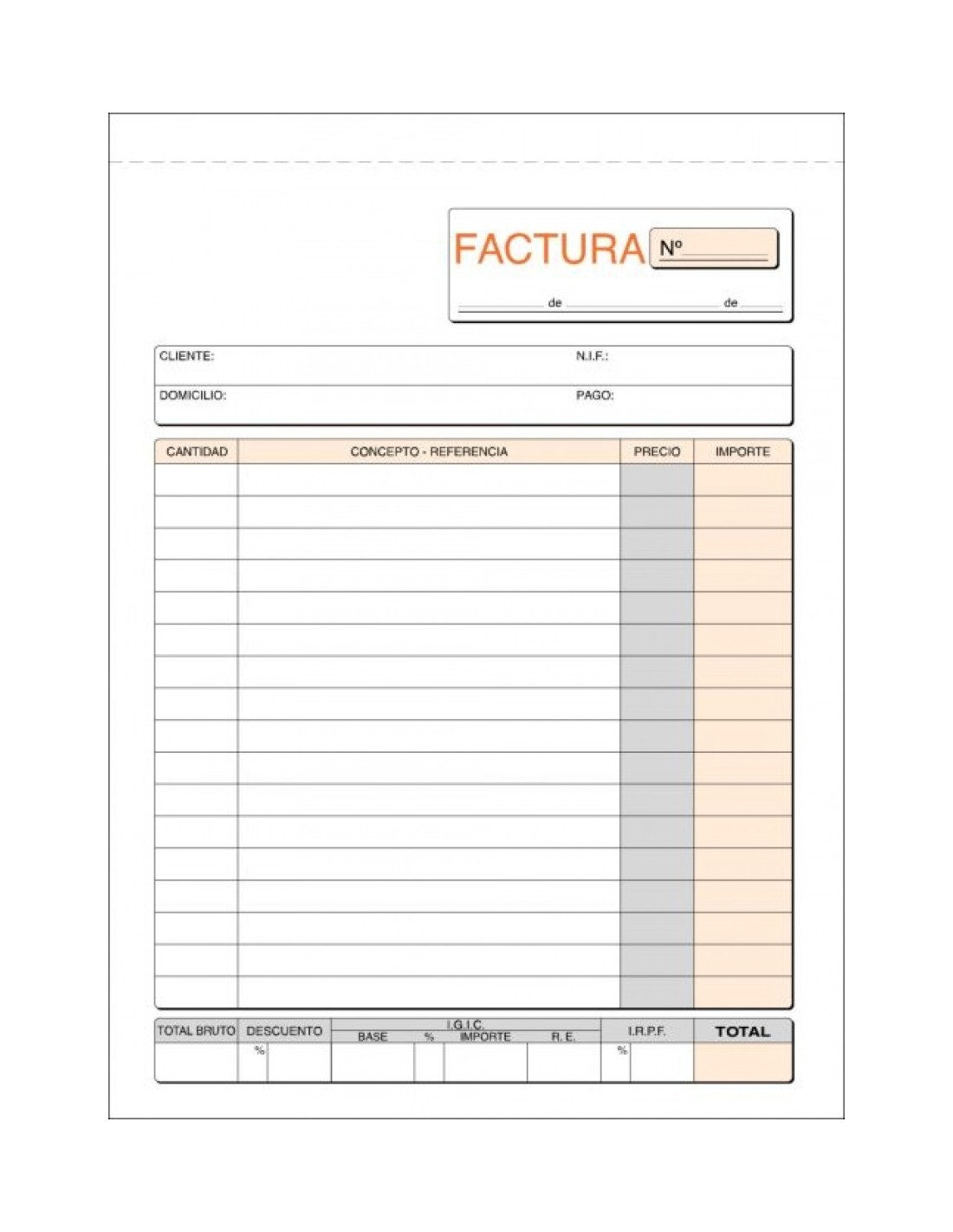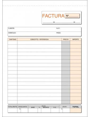 Paq/10 talonarios de facturas 1/3 fº natural duplicado I.G.I.C.
